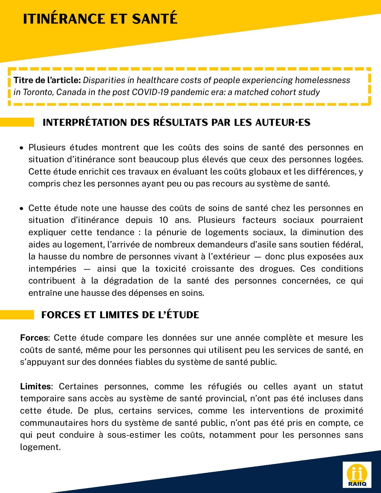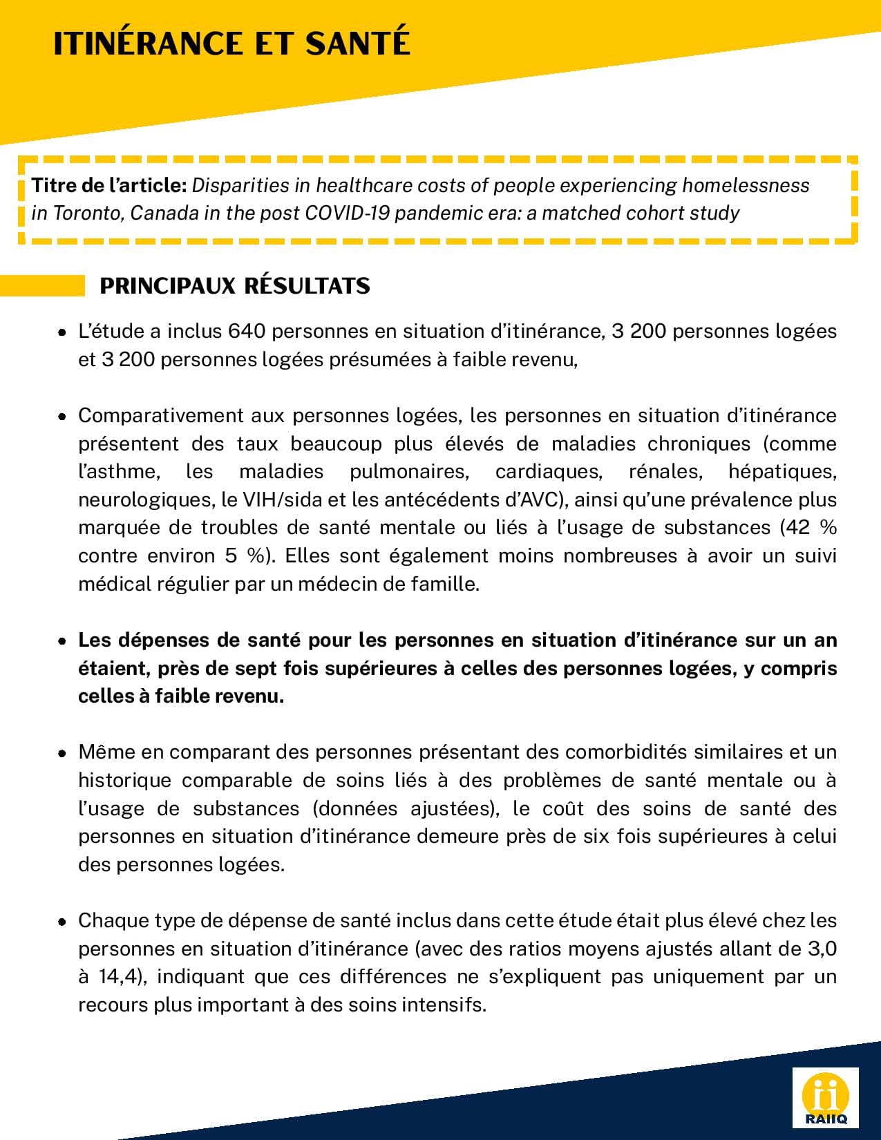 Même à âge, sexe, conditions médicales et historique de soins équivalents, les personnes en situation d’itinérance présentent des coûts de santé bien plus élevés que les personnes logées. Cette différence renforce l’idée que l’absence de domicile a un effet aggravant important sur la santé.
